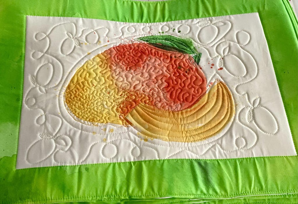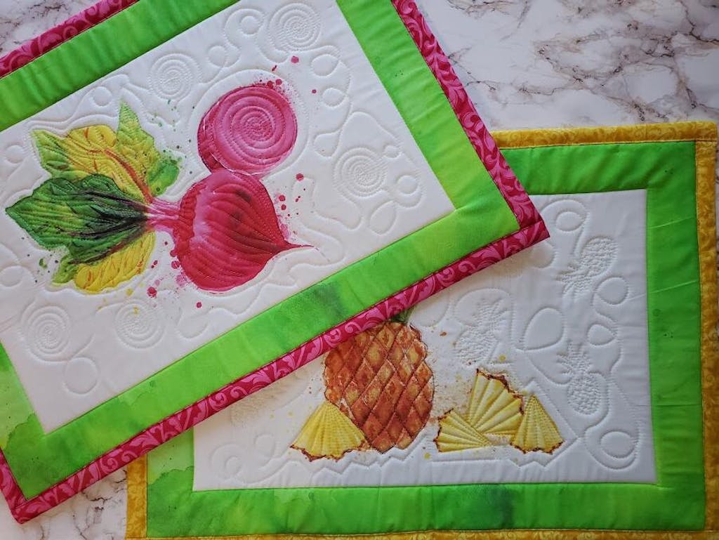 The custom quilting stitches are well designed and add such a fun touch to the placemats. This enhances the beautiful artwork. And you don't have to decide what color to use - instructions are complete and easy to follow.